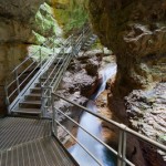 seguendo il caratteristico sentiero scavato nella roccia a picco sul fondovalle ma ottimamente protetto
